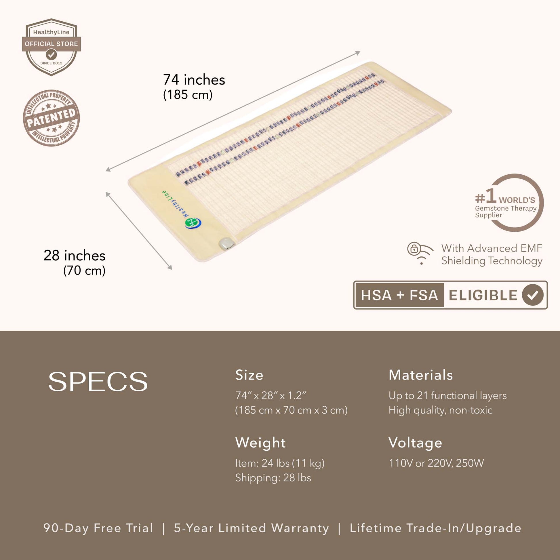 The SOFT Series is a Far Infrared Heating Mat that combines Far-Infrared Heat and Negative Ion Therapy with a padded, flexible surface made from crushed natural gemstones, including Amethyst, Jade, and Tourmaline. These mats are lightweight, easy to handle, and versatile enough for yoga, stretching, or everyday relaxation. Whether you need full-body coverage or targeted therapy, the SOFT Series delivers unmatched comfort and therapeutic benefits.